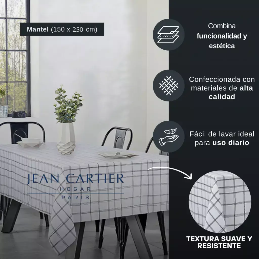 Agrega un toque fresco a tu mesa con el Mantel Cuadrícula de Jean Cartier de microfibra premium. Su diseño estampado entrega un toque moderno y funcional a tu cocina